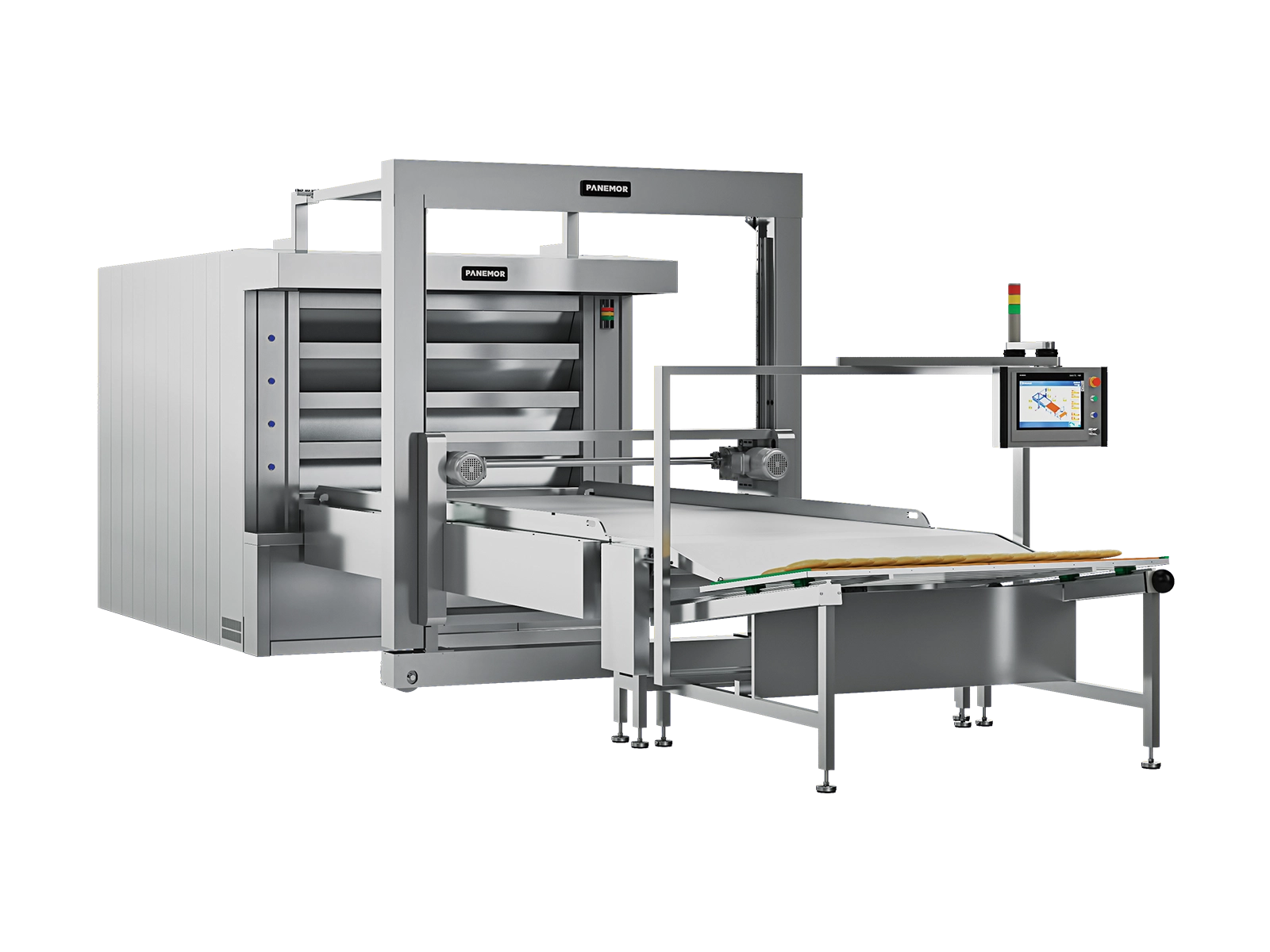 PANEMOR çok katlı otomatik yüklemeli fırın, müşterilerimizin yüksek üretim kapasitesi, el değmeden yapılan üretim metodu ve ilerleyen zamanlar için genişletilebilir makine parkı talepleri doğrultusunda, en son teknolojik yenilikler dikkate alınarak üretilmiştir. Boru tip ısıtma sistemi şeklinde iki farklı modeli mevcuttur. Siklotermik tip sistemlerde, ayarlanabilir hava akış valfleri ve bilgisayar kontrollü pişirme sistemi sayesinde, her katın hava akışı kontrol edilebilir. Böylelikle üst veya alt kat fark etmeksizin tüm yüzeyde eşit pişirme dengesi sağlanır. Borulu tip sistemlerde, katları çepeçevre saran borular ile pişirme yüzeyinin tamamı eşit şekilde ısıtılabilir. Fırın zemini üzerine yerleştirilen borular, tabandaki ısı kanallarından geçen sıcak havadan eşit şekilde enerji transfer ederek, bu ısıyı üst katlara aktarırlar ve fırının tüm yüzeylerinde eşit pişirme dengesi sağlanır.